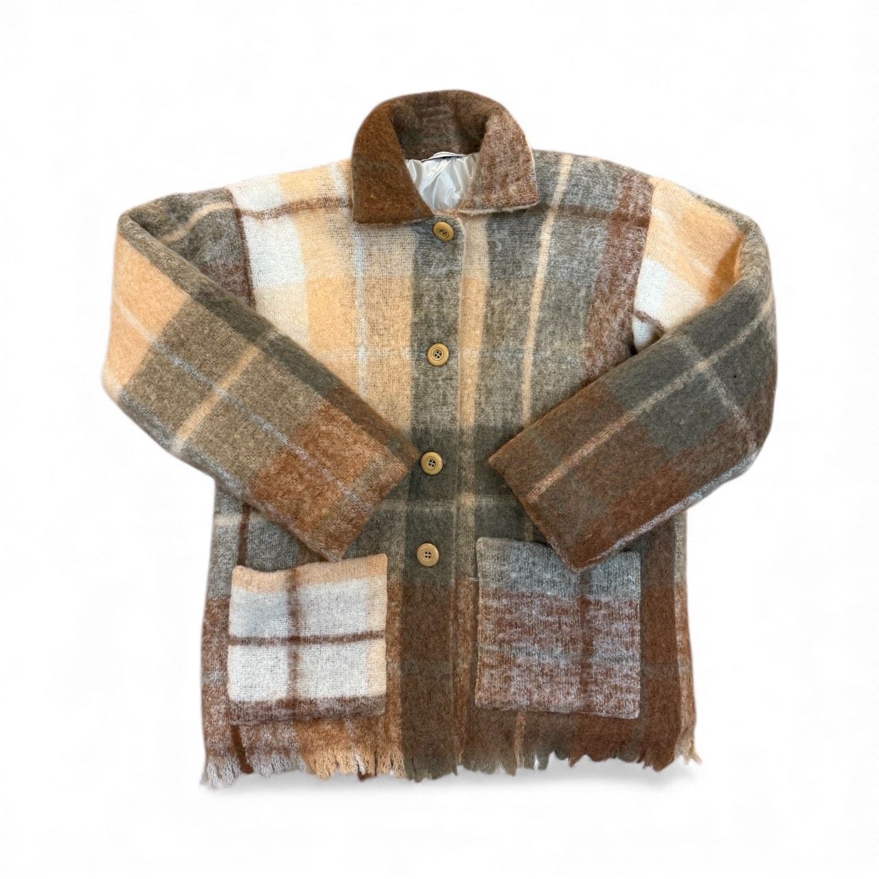 plaid jacket olive and brown padded